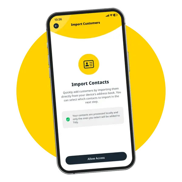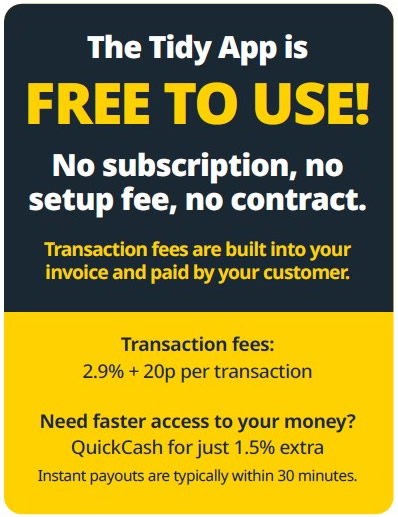Tidy helps self-employed professionals stay on top of business admin on the go; schedule jobs, create invoices, get paid with Tap to Pay, and do your accounts – all in one easy-to-use app.